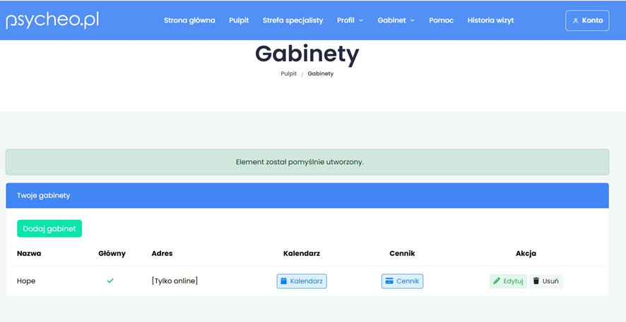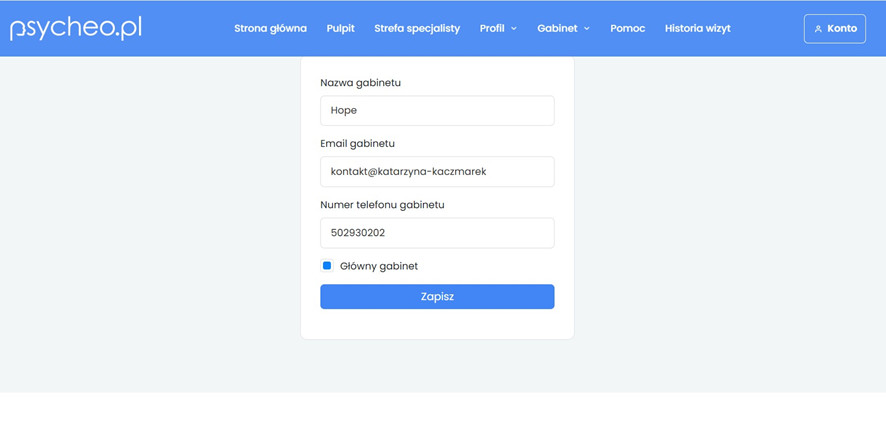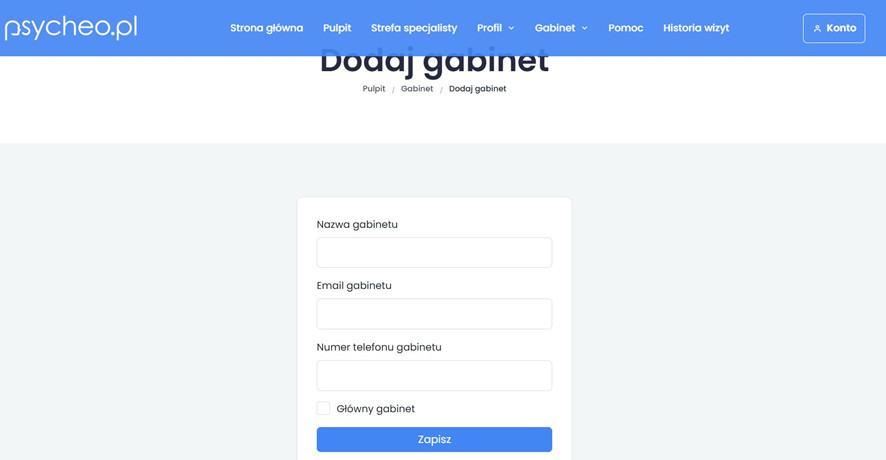 Krok 4: Wypełnij formularz dodawania gabinetu i zapisz