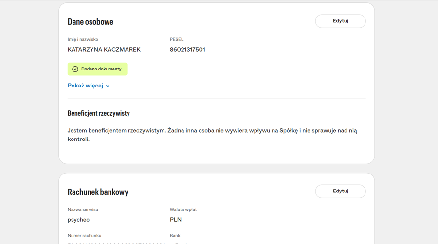 Krok 13: Sprawdź dane osobowe i beneficjenta rzeczywistego.