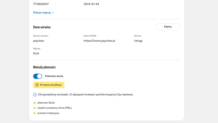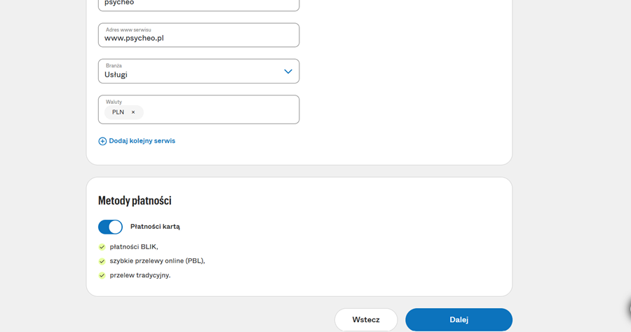 Krok 5: Wybierz dostępne metody płatności (karta, BLIK, szybkie przelewy itd.).