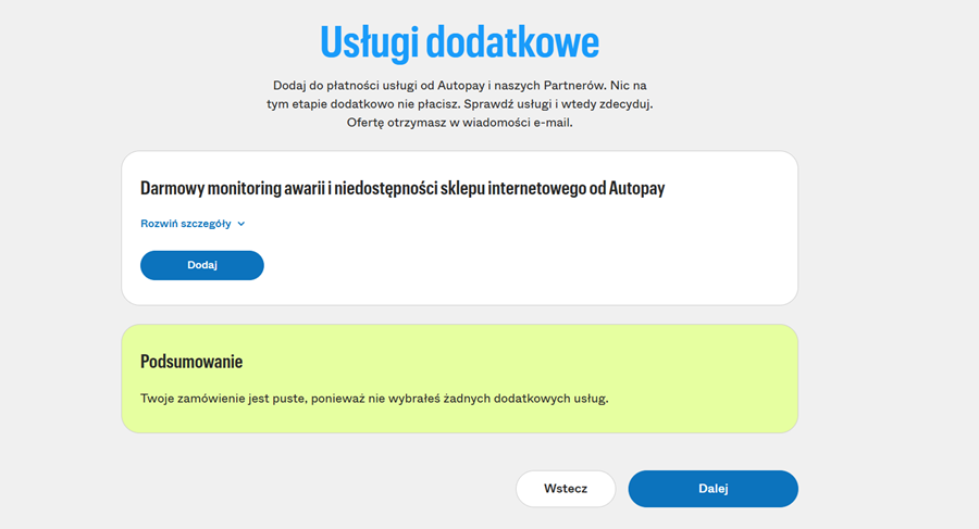 Krok 10: (Opcjonalnie) Dodaj usługi dodatkowe – np. monitoring sklepu.