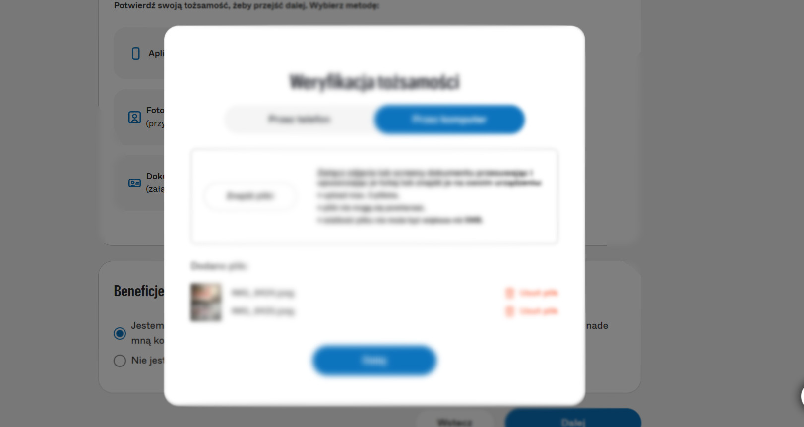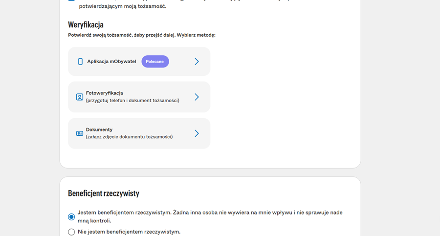 Krok 7: Wybierz metodę weryfikacji tożsamości – aplikacja, zdjęcie lub dokument.