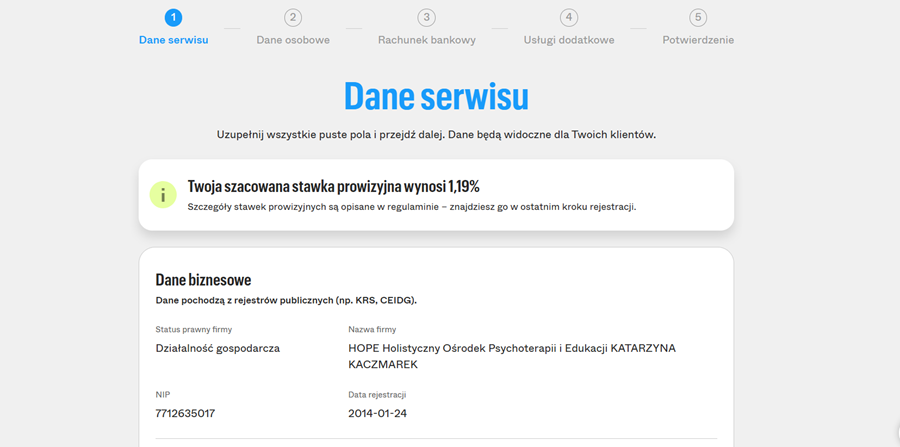 Krok 3: Sprawdź automatycznie pobrane dane firmy z CEIDG/KRS.